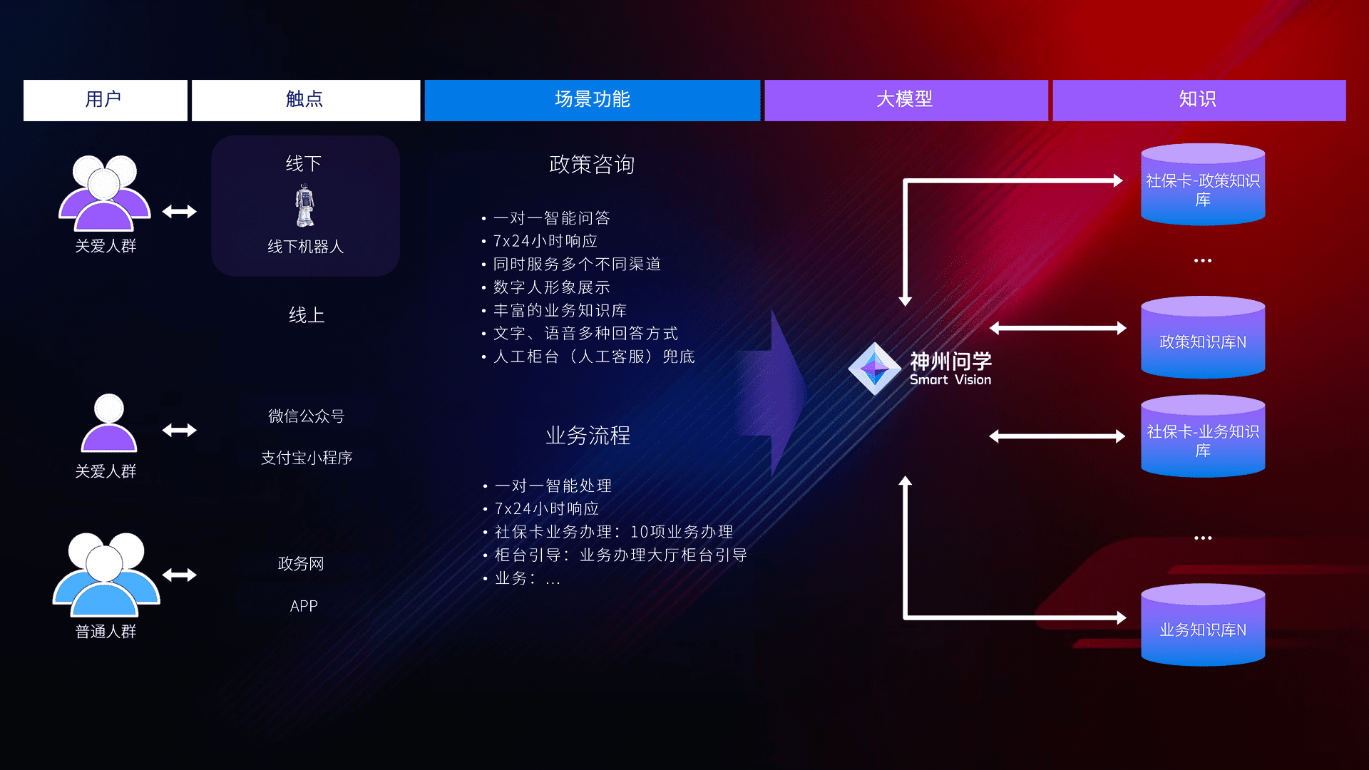 • 线上线下全覆盖:线上提供微信公众号、、支付宝小程序、、、、政务网、、、app多种渠道,,,与线下机器人形成完整服务体系。。